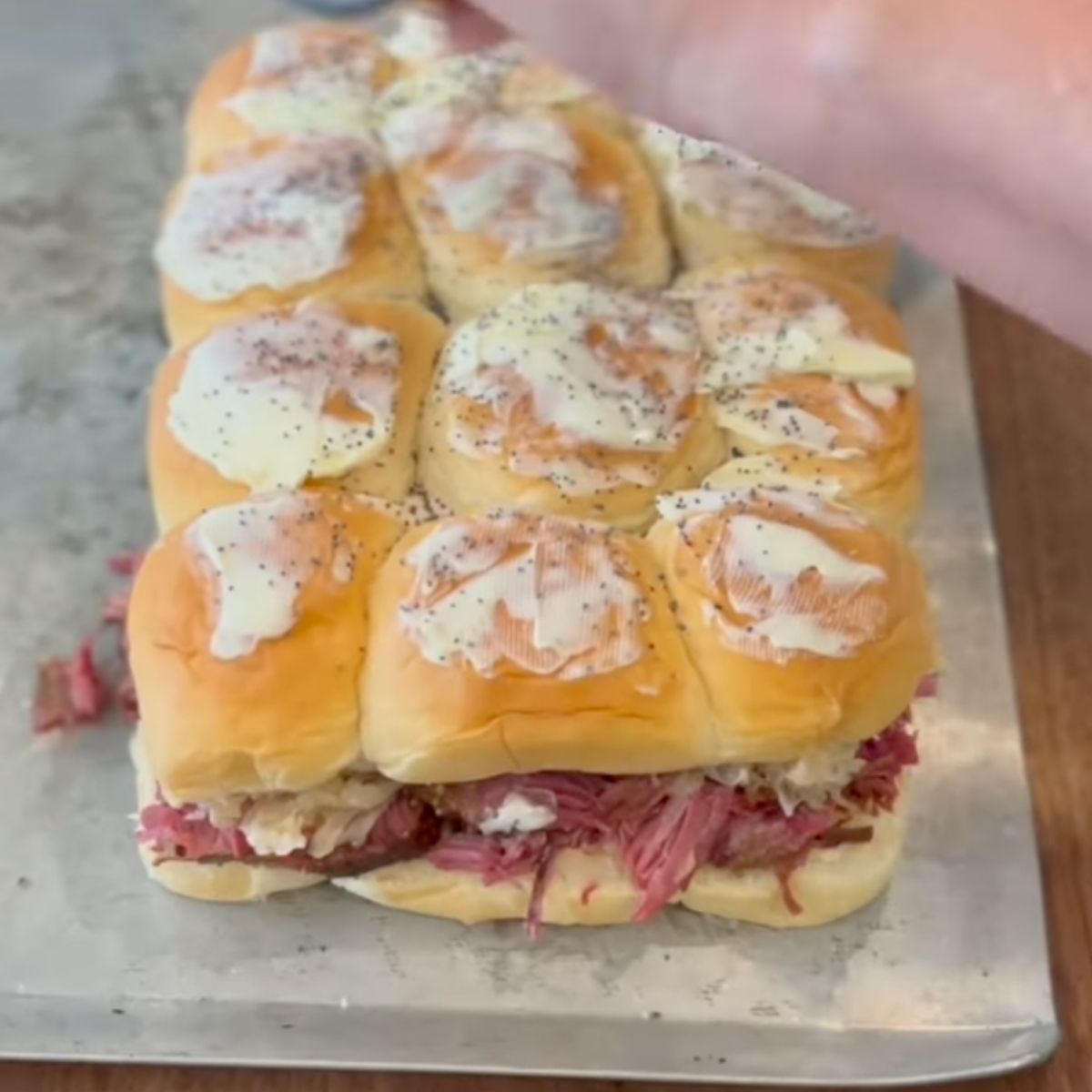 - 🍪 Main Ingredients: Hawaiian buns, corned beef, slider sauce, sauerkraut, and Swiss cheese.